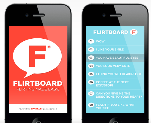 In opdracht van Sparkle* online dating ontwikkelde Ivaldi de iPhone applicatie Flirtboard. Met Flirtboard wordt het makkelijk om in het Engels (de meest universele taal ter wereld) te flirten wanneer je wil en waar je ook bent.